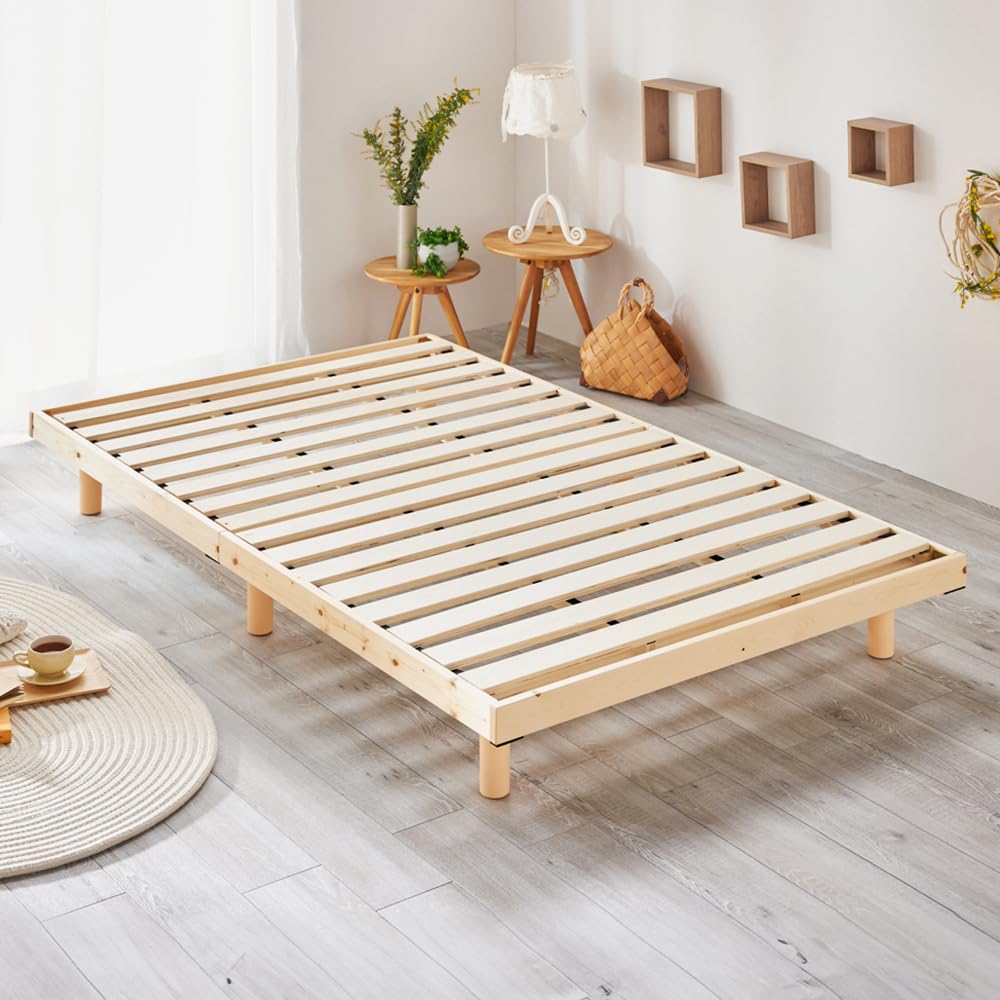 ■商品コード 176158 ※サイズ:±1cm以内の誤差が生じる場合もございます ※商品仕様は予告なく改良となる場合があります ※天然木材のため、フシの部分がある場合がございます。 ※こちらの商品はベッドフレームのみとなります。マットレス、小物などは付属しません。 ※こちらの商品はお客様組立となります。 ※詳細画像をご確認ください。 ■サイズ 本体サイズ:約幅98×長さ200cm ロータイプ使用時:6.5cm すのこ厚み:約1cm(すのこ2枚) ※撮影時マットレス:厚み10cm 梱包サイズ:(1個口)102×34.5×17cm(約17kg) 【高さ】 ハイタイプ使用時:32.4cm ミドルタイプ使用時:19.5cm ロータイプ使用時:6.5cm ■重量 約16kg ■素材 本体:ロシア産パイン(ラッカー塗装/脚:オイル塗装) すのこ:LVL(折り畳み式) ■カラー ナチュラル/ホワイト/ダークブラウン ■生産地 中国 ※商品出荷後のキャンセルはできかねます。ご了承ください。 ※時間指定は出来かね