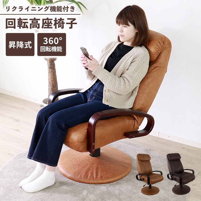 ■回転高座椅子 リクライニングチェア 高座椅子 回転式 1人掛け ソファ イス ヘッドレスト付 ファブリックレザー おしゃれ 高級感
