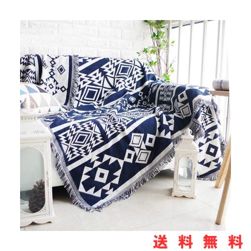 ■HomeFirst 北欧風 マルチカバー 長方形 ソファーカバー 多機能 ブランケット マルチカバー ソファ ベッドカバー フリンジ付き 綿 1人掛け