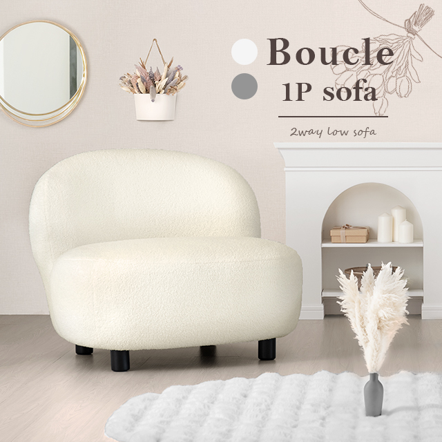 ■ソファ 1人掛け 幅101cm ブークレ生地 ( ソファー 1人掛けソファ 一人掛け イス 椅子 チェア 完成品 ファブリック 布 ゆったり sofa お