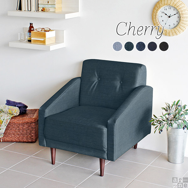 ■ソファ ソファー デニム ブルー 肘掛 西海岸 コンパクトレトロソファ リビングソファ ダイニングソファ 1人掛け Cherry 1P □