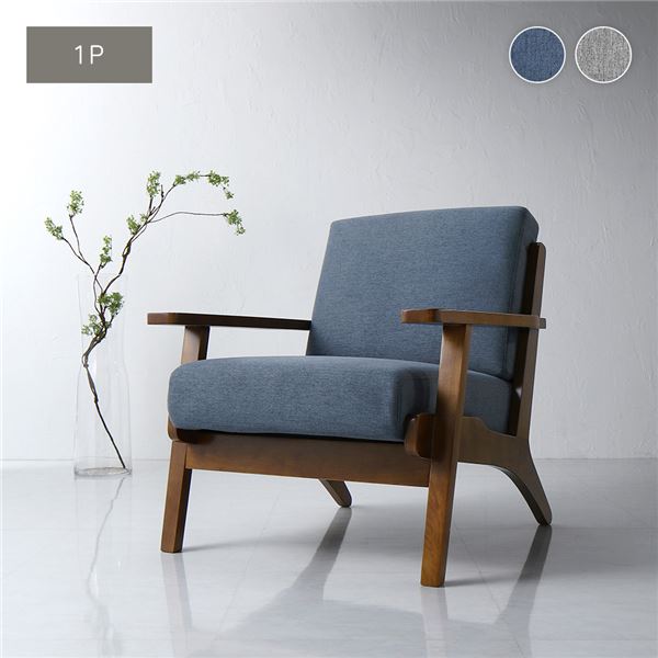 ■ソファ 1人掛け ネイビー 肘付き 天然木 木製 木肘 木枠 北欧風 ソファー デザイナーズ お客様組立品 インテリア家具