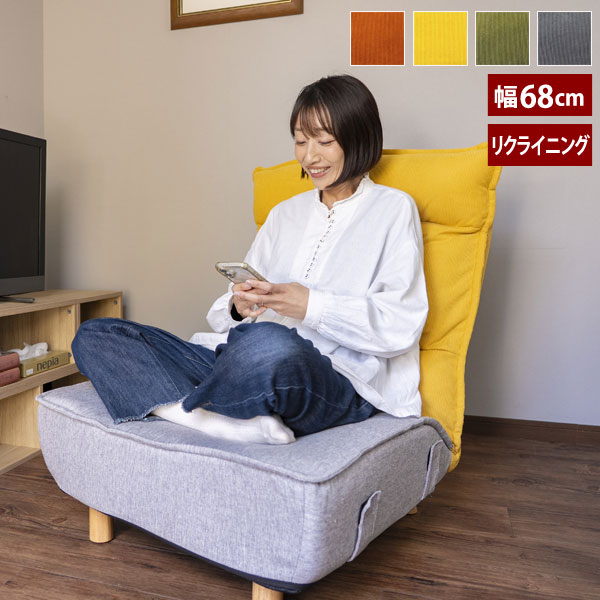 「ピコチ」リクライニング座椅子は、ゆったり68cm幅の広い座面で、あぐらをかいても余裕があり、自由な姿勢でおくつろぎいただけます。座面内部にはポケットコイルを採用。少し硬めのワイド座面と、やや柔らかくボリュームを持たせた背クッションが、体をしっかりと支えます。背もたれは42段階、ヘッド部分は14段階の日本製ギアを使用。木脚を外せばローソファとしても使えます。 組立品 カラー(品番):ラセットブラウン(PICO-CHIRBR)/グレー(PICO-CHIGR)/マスタードイエロー(PICO-CHIMT)/リーフグリーン(PICO-CHILF) サイズ(約): 本体/幅68×奥行71〜139×高さ32〜91(座面高61〜71)cm 木脚/12cm、座面厚み/20cm 座面中央部の高さ/木脚あり29cm、木脚なし17cm 重量(約):10.4kg 仕様:耐荷重約100kg、ポケットコイル56個、リクライニング/本体42段、ヘッド14段、日本製ギヤ、お客様組立5分程度 生産国:中国