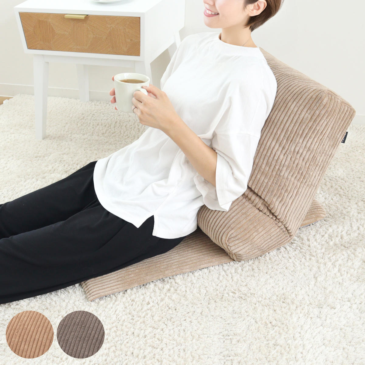 ■座椅子 幅52cm 折りたたみ コーデュロイ ( フロアソファ マルチ 1人掛け ソファ クッション 枕 足置き コンパクト 収納 リクライニング