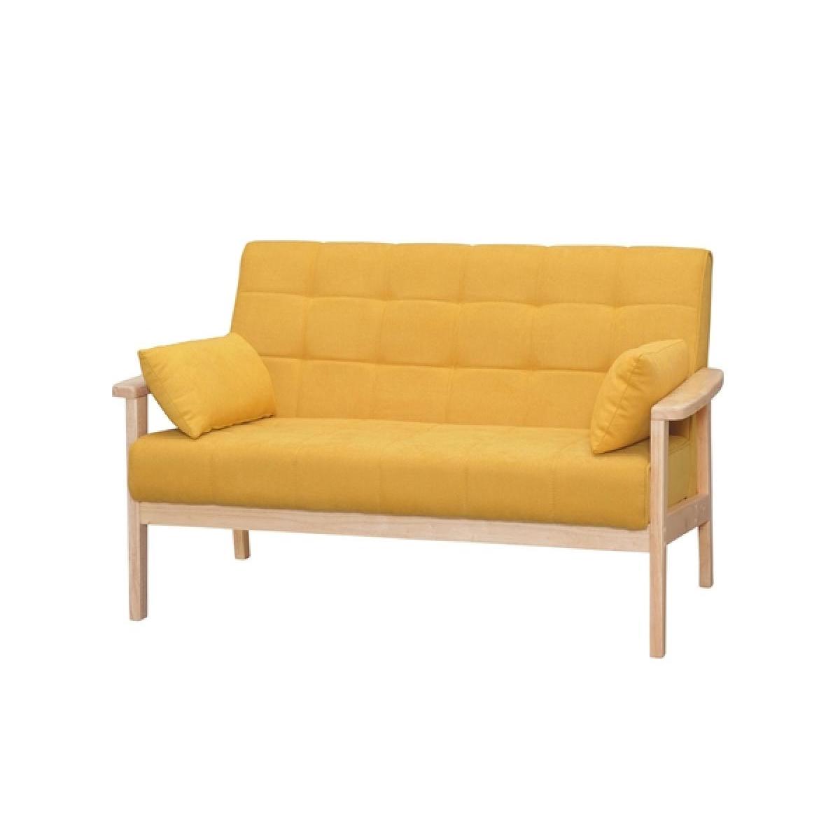 ■【I】【代引不可】 アイリスオーヤマ 2人掛け ウッドフレームソファ WFS-2S マスタード イエロー お客様組立 ソファ 二人 簡単組立 【北
