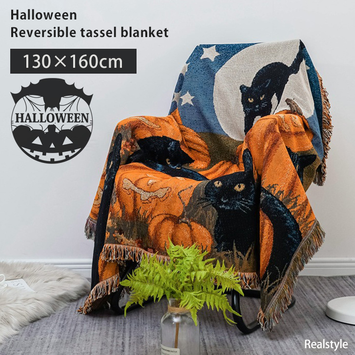 ■新作 ブランケット ハロウィン 飾り かぼちゃ おしゃれ 大判 北欧 マルチカバー 長方形 ソファ ベッド 3人掛け 肘なし 2人 あり 猫 装飾