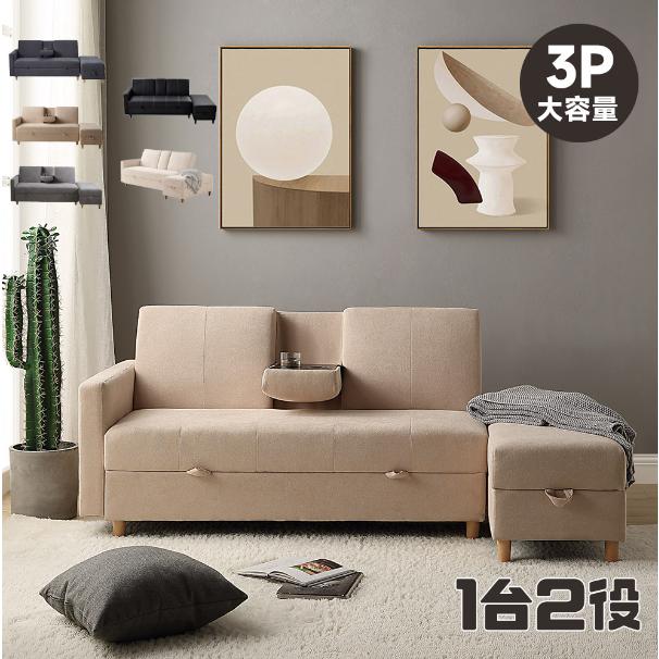■ソファー ベッド 3人掛け ソファ |2WAY リクライニング 引き出し付き 合皮 日本製 幅190cm ニッセン nissen