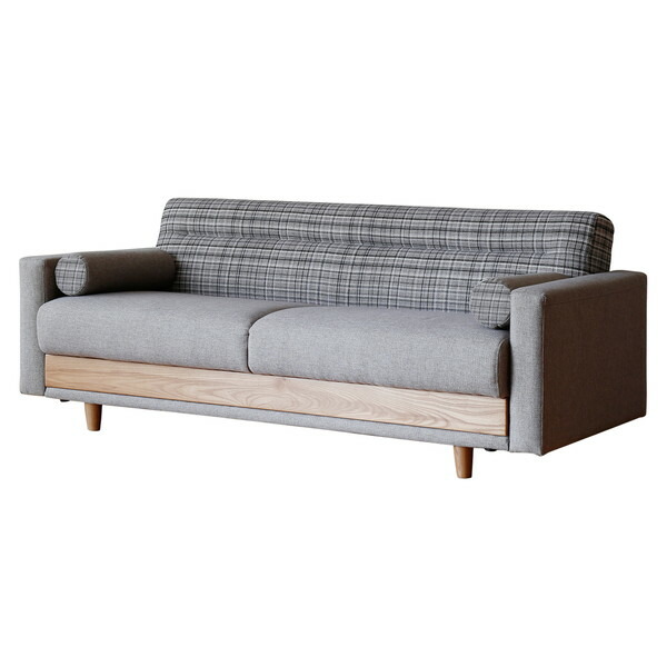 ■【送料無料】3人掛け【ソファ】幅185 3P & starf;パイン材 天然木 クッション 座り心地 アンティーク調 無垢 肘掛け カウチソファ 組立 ギンガム