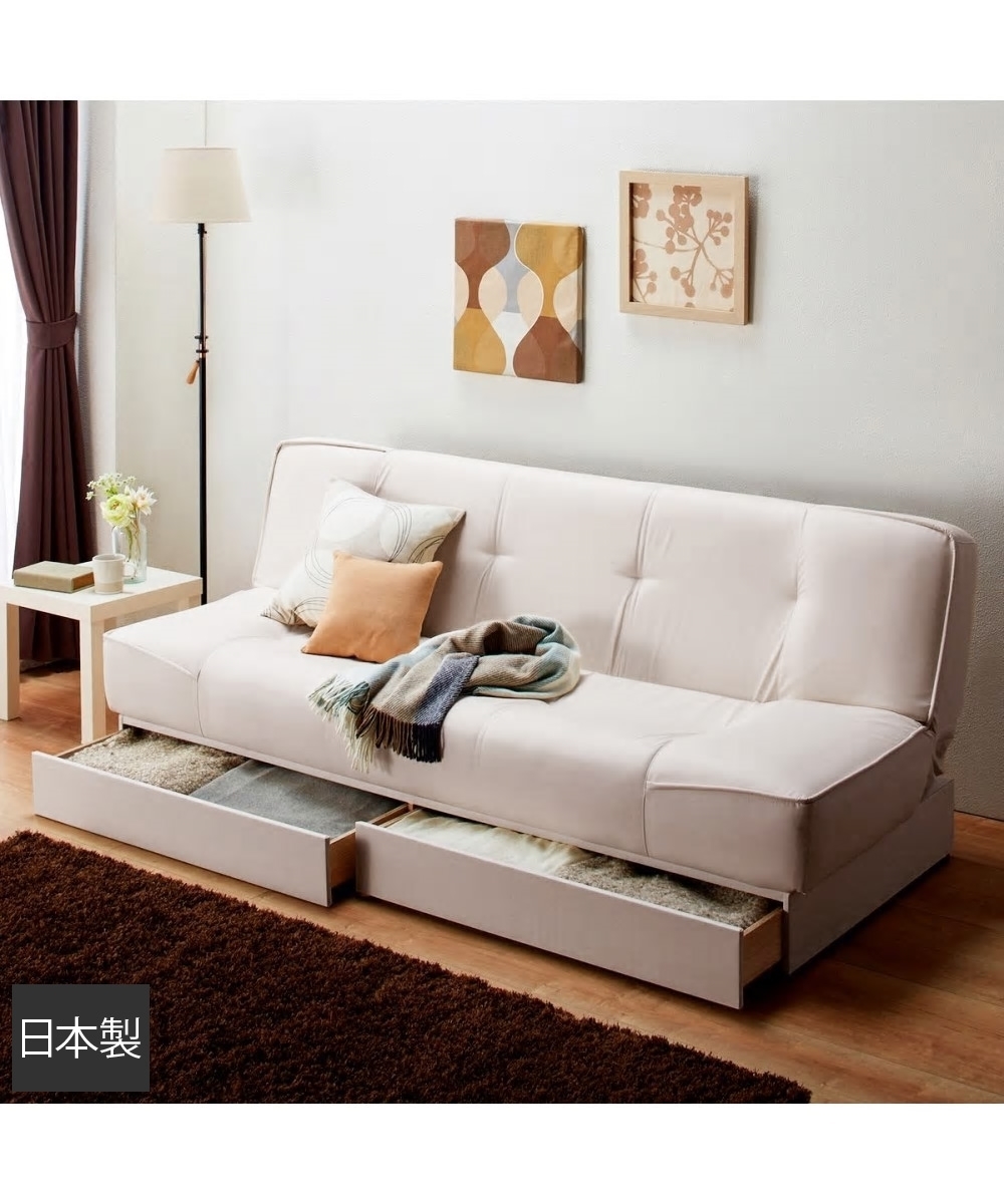 ■ソファー ベッド 3人掛け ソファ |2WAY リクライニング 引き出し付き 合皮 日本製 幅190cm ニッセン nissen