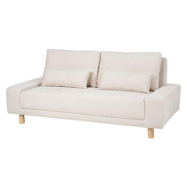 【商品説明】●低めのフラット肘、ゆったりと広い座面で寝転んでくつろげるソファ。ロー/ハイ兼用●商品サイズ(外寸):(約)幅194×奥行93×高さ77×座面高42cm●内寸及び補足説明:●組立式●ミニクッション2ヶ付●成分材質:構造部材:天然木、張地:ポリエステル、座面:Sバネ・ウェービングベルト、クッション材:ウレタンフォーム