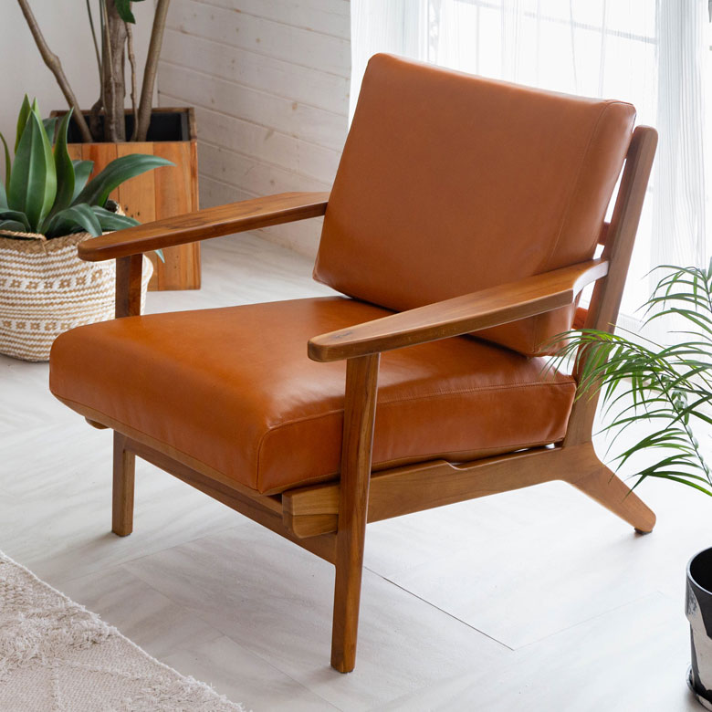 ■サイズ(cm) 約 W 69 × D 77 × H 74 × SH 40 床から肘掛までの高さ:H54 ※多少サイズは前後します。 ■梱包サイズ(cm) 約 W84 × D73 × H75 ■重量 約 11.5kg ■素材 天然木(チーク) ラッカー塗装 本革 合皮 ■ご注意 ※割れや裂けの原因になる為、直射日光の当たる場所や湿度の高い場所での使用は控えてください。 ※天然木を使用しておりますので、木目や色合いに個体差がございます。 ※本革特有の匂いや色ムラ、しわや小さな傷がある場合がございます。 ※日常のお手入れは柔らかい布で軽くふいてください。 ※科学雑巾などは使用しないでください。 ※こちらの商品はメーカー直送の為、代引でのお取扱いができません。 ※モニターの種類やパソコンの環境により、実際の商品のお色と若干異なる場合がございます。 ※納期表示について、メーカーの状況により多少の変動が生じます。お急ぎの際は予め当店までご連絡くださいませ。 商品コード[91480]