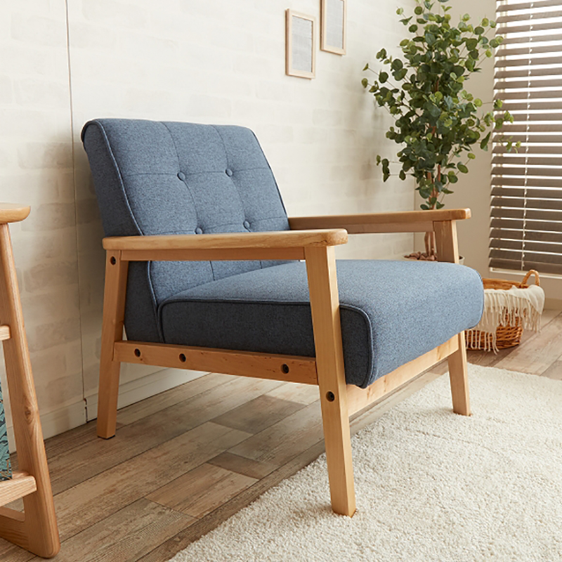 ■ソファ 1人掛け 天然木製フレーム 一人掛け 布張り PVCレザー張り 1P レトロモダン 北欧インテリア 幅63.5cm RENT