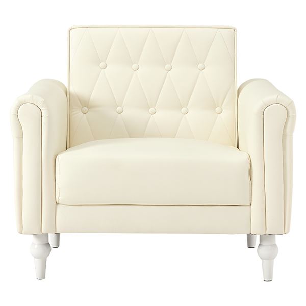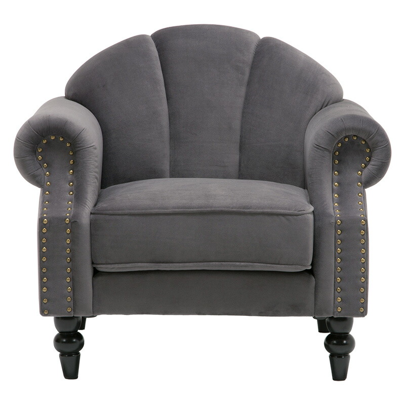 上品さと可愛らしさを掛け合わせた1人掛けソファ。背面のクロスボタンステッチや丸い肘掛けなど、こだわったデザインが魅力的