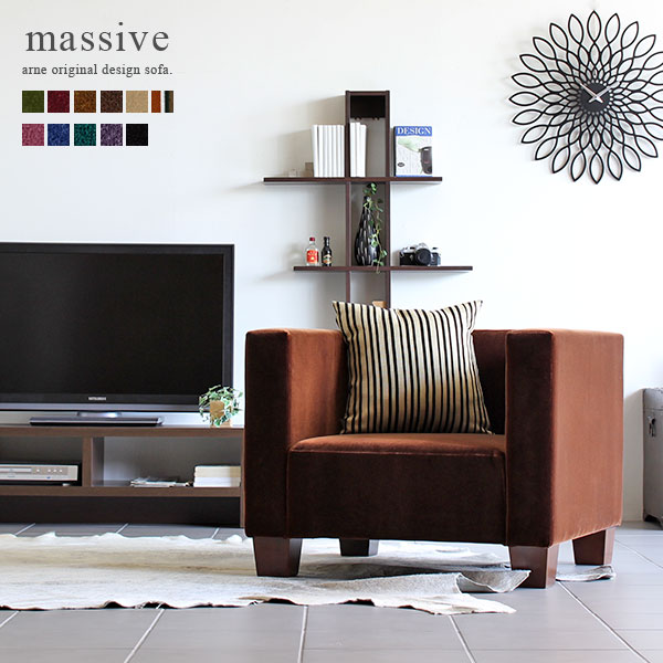 ■ソファー 一人掛け ローソファ ソファ モダン 北欧 肘付き おしゃれ カフェ 人気 モケット ベロア massive 1P □
