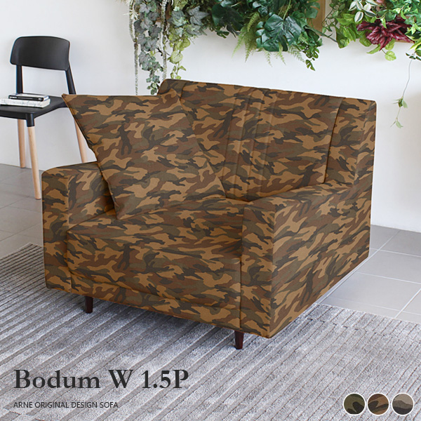 Bodum W 1.5P 迷彩生地サイズ:約幅945 奥行き910 高さ750 mm座面高さ:350 mm脚高さ:100 mm材質:[本体]Sバネ、ウレタンフォーム [脚]天然杢[張地]綿100%カラー:カーキ/ブラウン/ベージュ重量:約33kg日本製/完成品(脚のみお客様取り付け)ローソファとしても使えるアジャスター付属同色60cmクッション1個付属カバーの取り外し不可※ご入金後の注文キャンセル・返金不可送料無料※離島は送料別途お見積もり。【ご注意】離島・郡部など一部配送不可地域あり。配送不可地域の場合は通常の配送便での玄関渡し。建物の形態(エレベーターの無い3階以上など)によっては別途追加料金を頂戴する場合あり。吊り上げ作業などが必要な場合についても追加料金はお客様ご負担です。サイズの確認不十分などの理由による返品・返金は不可。ご注文前に商品のサイズ、搬入経路の幅・高さ・戸口サイズ等充分にご確認願います。0000a43644/0000a43645/0000a43646/