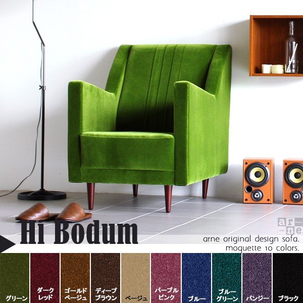 ■ハイバックソファー 脚付き 北欧 カフェ ソファ 一人掛け おしゃれ コンパクトソファ リビング 書斎 Hi Bodum 1P モケット ベロア □