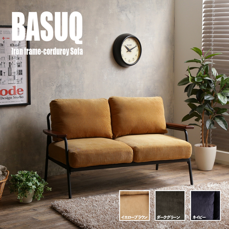 ■BASUQ-2P バスク 二人掛けソファー SOFA コーデュロイ生地 イエローブラウン/全3色 幅136cm×奥行約73cm×高さ約80cm 座面高:42cm 北欧