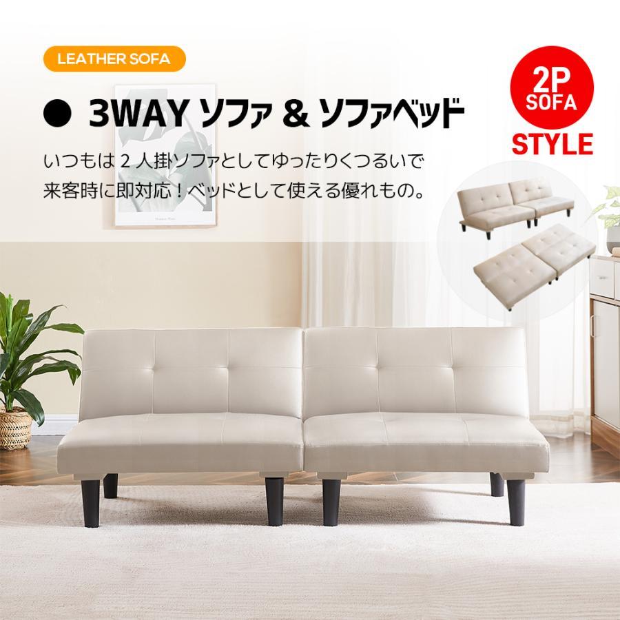 ソファーベッド ソファー 2人掛け 背もたれ3段階 ローソファ ソファーベッド ソファー PUレザー 2P リクライニング ベッド ロータイプ ソファーベット
