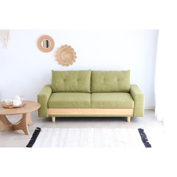 ■FZ_ケイシー2.5P_収納ソファベットGR グリーン 組立品 【北海道・沖縄・離島配送不可】