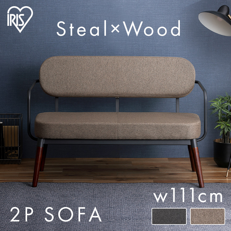 "Steal×Wood/2P sofa"スチールフレームと天然木脚の異素材が織りなすハーモニー。おうち時間をより心地よく過ごすソファ。★お客様組立★●製品サイズ(cm)本体外寸:幅約111×奥行約65×高さ約74.5座面:高さ約39●製品重量約16kg●耐荷重約180kg※耐荷重は測定値であり、保証値ではありません。●主要材質フレーム:スチール(エポキシ樹脂塗装)脚部:天然木(ラバーウッド)座面:合板張り材:ポリエステルクッション材:ウレタンフォーム●カラーダークグレー、ブラウン※2人以上での組み立てをおすすめします。※組み立ての際は軍手をご用意ください。