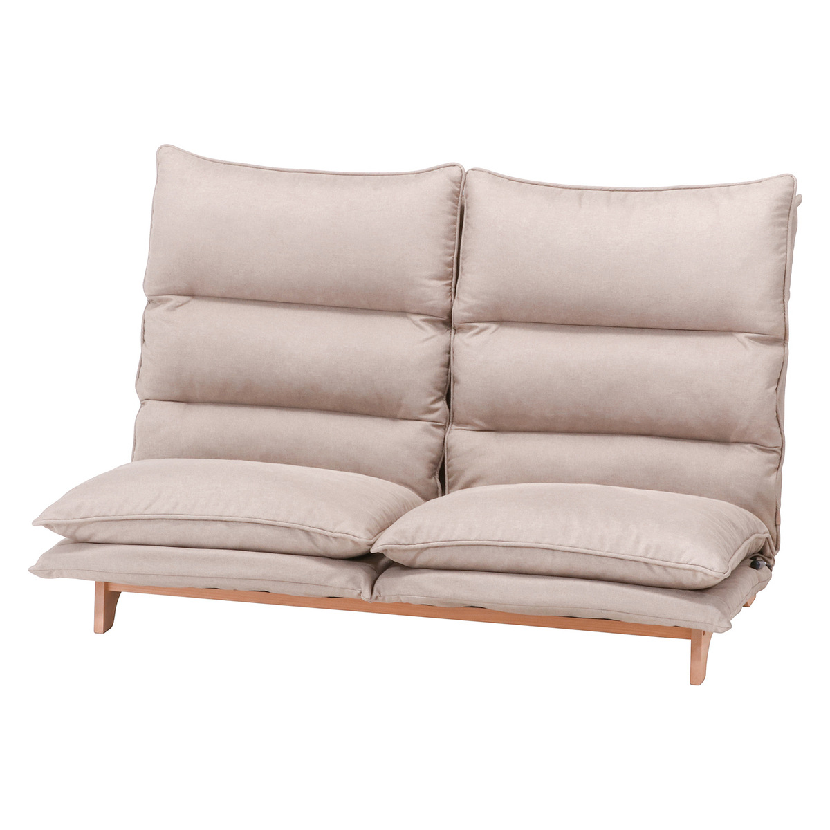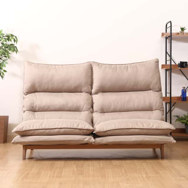■仕様・カラー:ベージュ・製品サイズ:幅1400×奥行800-1200×高さ700-940mm・座面高:290mm・耐荷重(座面):80kg・リクライニング角度:42-84度・材質:構造部材/金属(鋼)、張り材/ポリエステル、クッション材/ウレタンフォーム、フレーム/天然木・重量:27.5kg・お客様組立品■商品説明・包み込まれる座り心地。フィット感抜群の2人掛けハイバックソファ。・腰部レバー式6段階ギア+ヘッド部5段階ギアで、自分好みの体勢でリラックス。・※注意:一度開梱して背もたれを起こすとフラットには戻りません。※品質向上のため予告なく仕様を変更する場合がございます。パッケージのリニューアル等につき、商品画像が異なる場合がございます。商品画像の色合いは、画像処理上、若干異なる場合がございます。