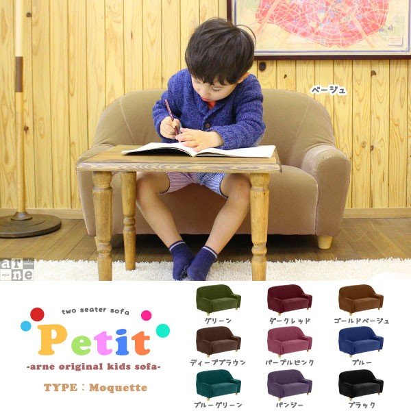 ■ミニソファ 2人 かわいい 子供用ソファー キッズソファ ローソファー 2P 2人掛け Petit プティ モケット □