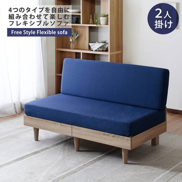 ■商品説明 ●自由に組み合わせて使えるフレキシブルソファの単品オプションです。 ●ユニットを自由に組み合わせて、様々なレイアウトをお楽しみいただけます。 ●前脚はテーパードレッグを採用し、バックフレームにもこだわり360度どこから見ても美しい仕上げ。 ●座面には高反発ウレタンをしようした肌触りの良い座面になっています。 ●深みのあるブルーとライトな木目がモダンに調和します。 ●湿気の多い日本での使用を考え、ベース部分はすのこ床で通気性を高めました。 ●組立式のソファなので、梱包がコンパクトで搬入経路を選ばずお受け取り頂けます。 ■商品詳細 【サイズ】 1Pソファ:(約)60×70×73cm、14kg 2Pソファ:(約)120×70×73cm、25kg コーナー:(約)70×70×73cm、19kg オットマン:(約)60×60×38cm、9kg 材質: 本体:LVL、MDF、メラミン化粧板、紙張り化粧板 脚材:芯材無垢、紙張り仕様 クッション材:ウレタンフォーム 外カバー:ポリエステル100% 組立:お客様組み立て式