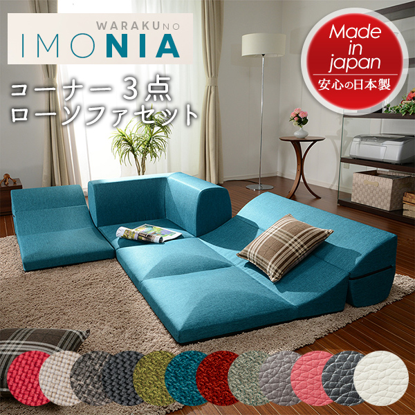 ■「和楽のIMONIA」 カバーリングコーナー3点ローソファセット フロアソファー ローソファー リラックス こたつ リビング 北欧テイスト ナ
