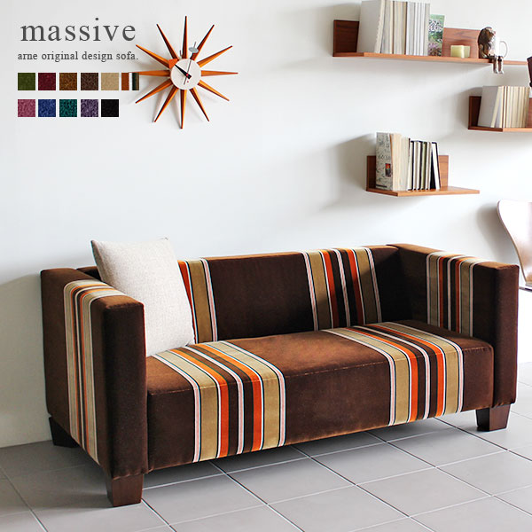 ■ソファ 布張り 2人掛け 国産家具 ローソファー おしゃれ ソファー 2人 北欧 カフェ 人気 モダン モケット ベロア massive 2P □