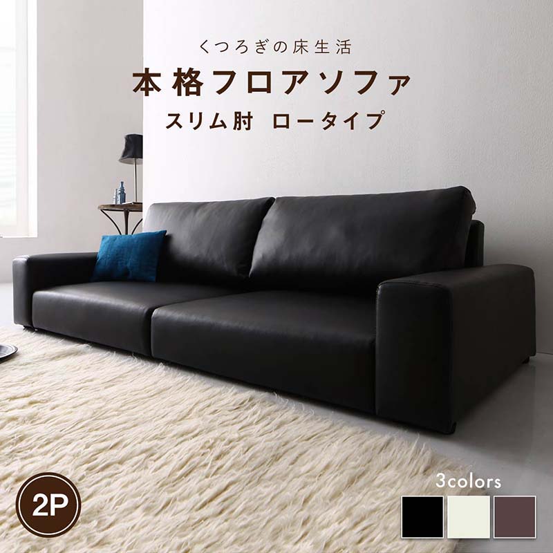 ■黒 ブラック、アイボリー 乳白色、ブラウンから選べる フロアソファ フロアソファ ソファ スリム肘 ロータイプ 2人掛け 2P