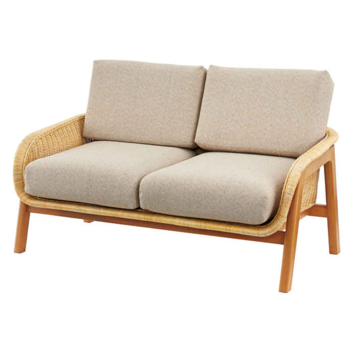 ■北海道・沖縄・離島配送不可 代引不可 ソファ 2人掛け 二人掛け 2P アーム付き 肘掛けあり アームソファ 脚付き ラタン 籐 天然木 ミンデ