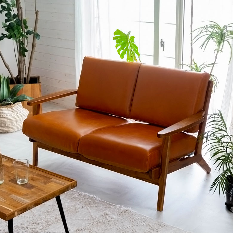 本革アームソファ 2人掛け天然木チークのフレームにキャメルブラウンの本革。■サイズ(cm):商品サイズ:約 W125 × D77 × H74 × SH40 床から肘掛までの高さ:H54 梱包サイズ:約 W126 × D83 × H74※多少サイズは前後します。■重量:約 20.0kg■素材:天然木(チーク) ラッカー塗装 本革 合皮 ■ご注意:※割れや裂けの原因になる為、直射日光の当たる場所や湿度の高い場所での使用は控えてください。※天然木を使用しておりますので、木目や色合いに個体差がございます。※本革特有の匂いや色ムラ、しわや小さな傷がある場合がございます。※日常のお手入れは柔らかい布で軽くふいてください。※科学雑巾などは使用しないでください。※こちらの商品はメーカー直送の為、代引でのお取扱いができません。※モニターの種類やパソコンの環境により、実際の商品のお色と若干異なる場合がございます。※納期表示について、メーカーの状況により多少の変動が生じます。お急ぎの際は予め当店までご連絡くださいませ。