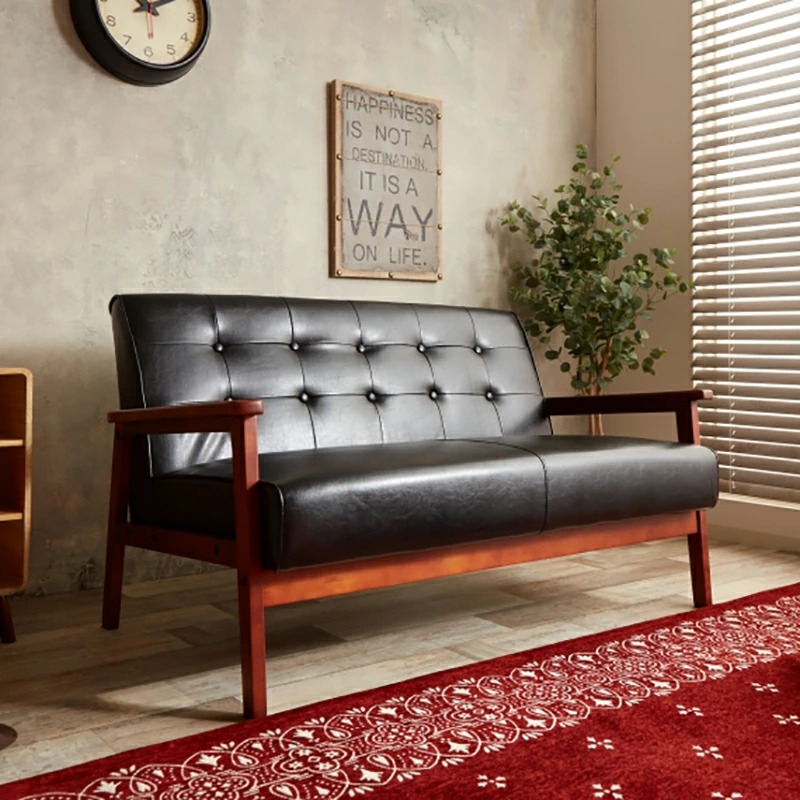 ■ソファ 2人掛け 天然木製フレーム 二人掛け 布張り PVCレザー張り 2P レトロモダン 北欧インテリア 幅127cm RENT2