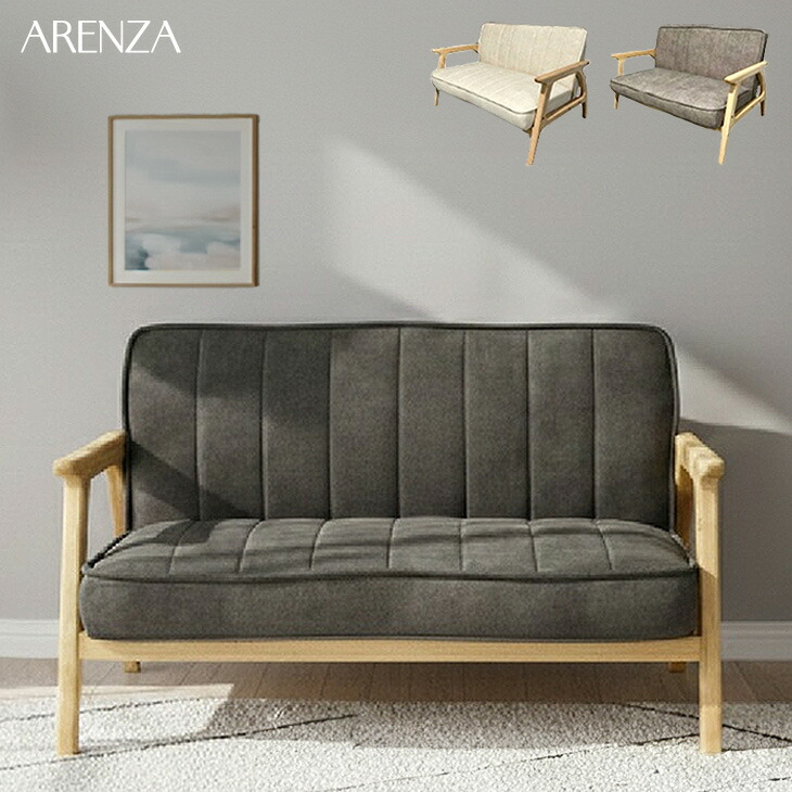 ■ソファ 2人掛け 単品 コーデュロイ グレージュ 肘付き カバーリング 天然木 木製 2P お客様組立品 送料無料
