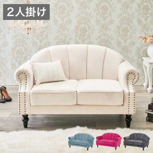 ■ソファ 2人掛け プリンセスソファ 貝殻モチーフ 2P 姫 エレガント 大人可愛い かわいい 肘付き 脚付き 完成品 姫系 ガーリー おしゃれ ソ