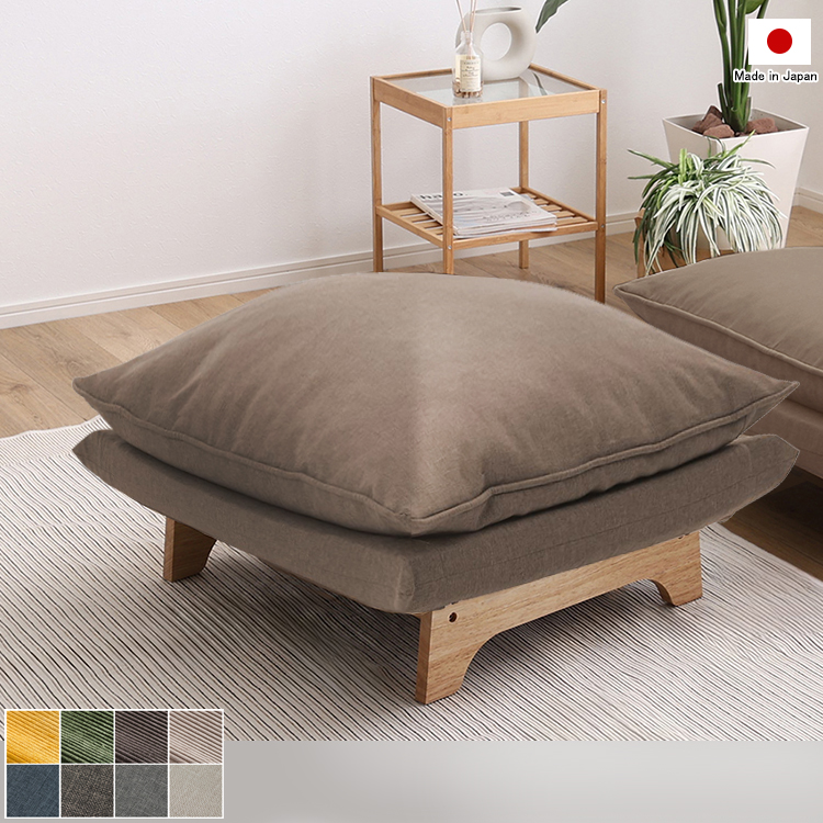 ■ローソファ オットマン単品 日本製 1人掛け 1P 木製 脚付き やわらか布張り ブラウン色 全8色 ふっくら極厚ウレタン2重クッション 座椅子