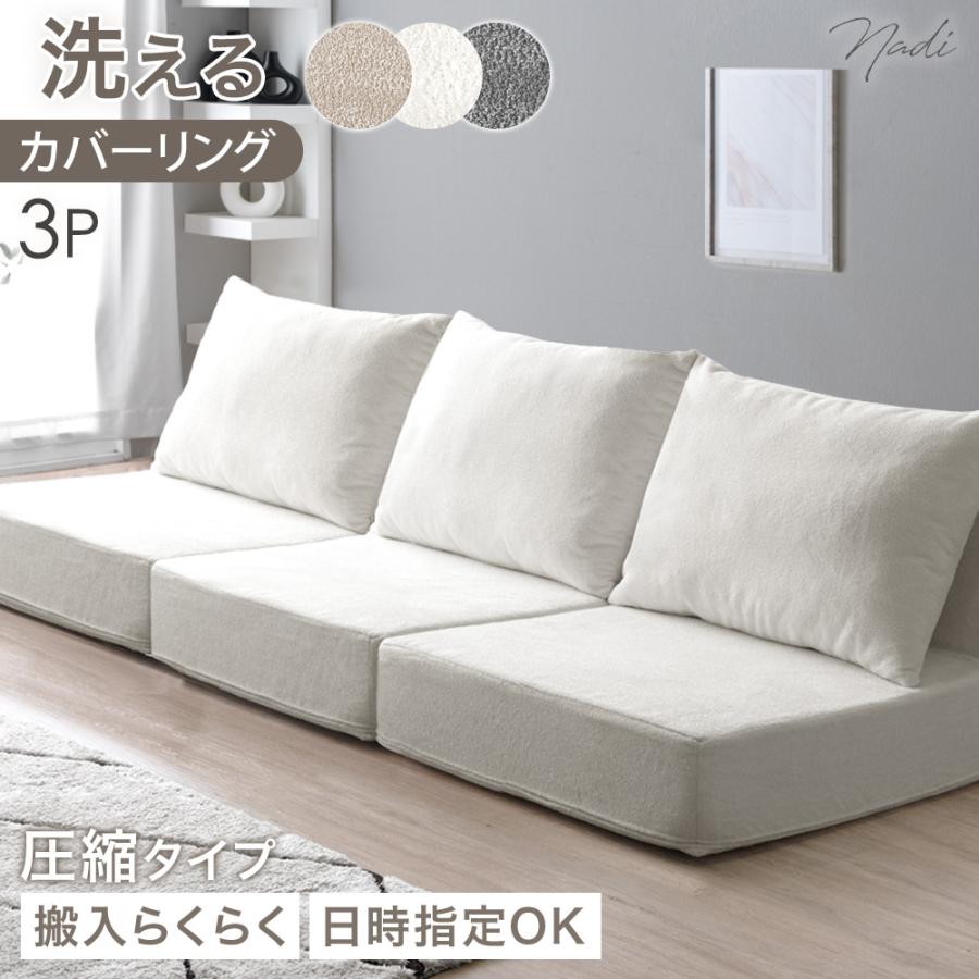 ■【正午〜P5%還元】 圧縮 ソファー 3人掛け 洗える カバーリング フロアソファ 分割OK ソファ ローソファ ソファ ローソファー フロアソフ