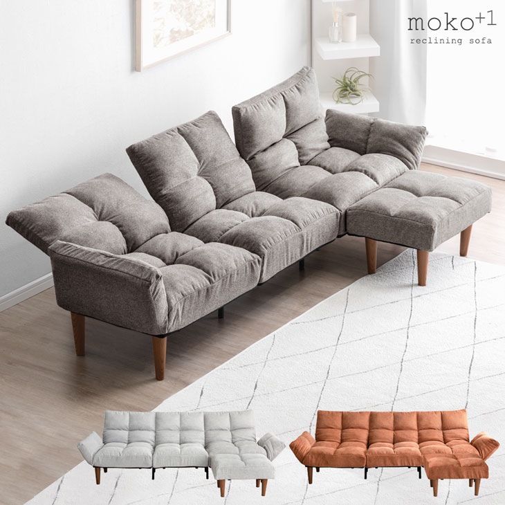 カウチソファ ソファ ソファー ソファーベッド リクライニングソファー ローソファー フロアソファ 三人掛け 3P コーナーソファー ごろ寝 脚置き スツール ブラウン グレー オレンジ【商品番号:15210157】