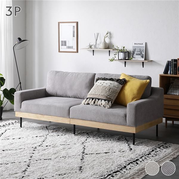 ■ソファ 3人掛け コーデュロイ グレージュ 単品 肘付き カバーリング 天然木 スチール脚 3P ソファー リビング ダイニング 組立品 【北海