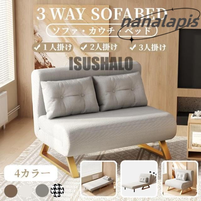[サイズ]W60×D66-197×H55×SH26(cm)[カラー]ベージュ グレー[素材]スチール ポリエステル[スペック]完成品商品重量:約7(kg)耐荷重:付属工具:必要工具:組立人数:組立時間:14段階リクライニング[生産国]中国[商品説明]エリス3wayソファがコンパクトなシングルサイズとなって登場。ソファ・カウチ・ベッドとライフスタイルに合わせて簡単チェンジ。シングルサイズは、一人暮らしのお部屋にもぴったり!急な来客用としても使えて、幅広い用途に対応します♪[備考]※お急ぎの場合は必ず事前に在庫確認を行って下さい。※メーカー倉庫より直送になります。※別途お見積りにはなりますが、開梱設置もお承り可能でございます。 法人、事業所、業者様などお気軽にお問い合わせくださいませ。[送料]全国一律無料(北海道、沖縄、その他離島は配達不可)
