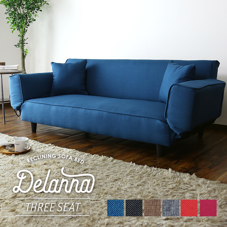 ■ソファー 3人掛け ソファーベッド シングル リクライニング クッション付 コンパクト 一人暮らし デランナ3P インテリア家具 おすすめ お