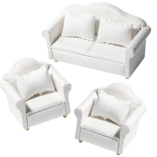 ■moin moin ミニチュア 1/12 スケール 家具 ソファ 3点セット B品 訳アリ/ドールハウス 二人掛け 一人掛け シングル クッション ホワイト