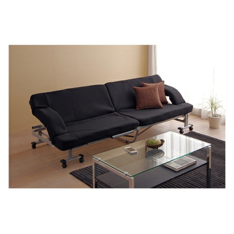★ベッドにもソファにも変身! 家具を置くスペースのないワンルームマンションや、テレビなどを見ながら家族でくつろぎたいリビングなど向き。 ★ベッド時もソファ時も、それぞれ14段階でリクライニング! お好みの角度で使用可能。TVを見たり、本を読んだりするときに便利。 ★安心してベッドをお使いいただくため、ベッドフレーム構造も細部までこだわりました。安心設計。 ★4本のバネの力で簡単に折りたたみ可能。折りたたみ時の幅は約31cmと省スペース!移動に便利なキャスター付。 ★ベッドの底部には、ホルムアルデヒドの放出量を抑えた合板を使用。 ★届いてすぐに使える!組み立て不要の完成品。