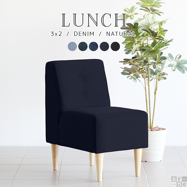 ■ソファ デニム シングル ソファー 北欧 1人掛け 一人掛け 西海岸 おしゃれ アームレス 肘なし ダイニング Lunch 3×3アームレス/脚DB □