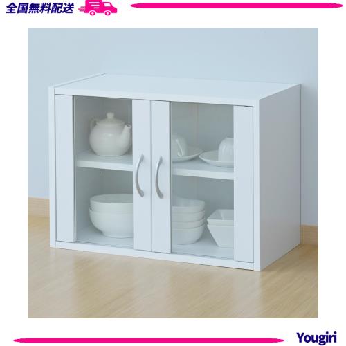 ■[山善] 食器棚 キャビネット キッチン 収納 ガラス扉 コンパクト 幅60×奥行29×高さ45cm 組立品 ホワイト CCB-4560(WH)