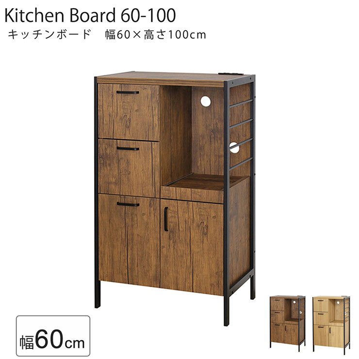 ■キッチンボード 幅60cm 2色対応 H100cm 食器棚 ダイニングボード キッチンカウンター キッチンラック レンジ台 台所 キッチン 収納 引き