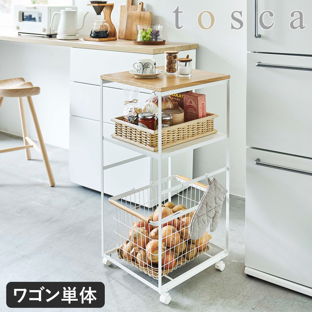 ■[ tosca キッチンワゴン ]キッチン 収納 ラック ワゴン キャスター付き 2段 スチール 天板付き 北欧 キッチンカート 整理 おしゃれ ナ
