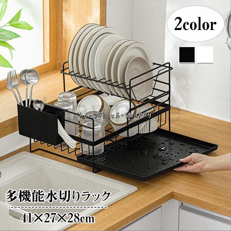 水切りラック 2段 スチール製 省スペース 大容量 おしゃれ 北欧 食器 お皿 茶碗 コップ 台所 キッチン 収納 整理 水切り ラック
