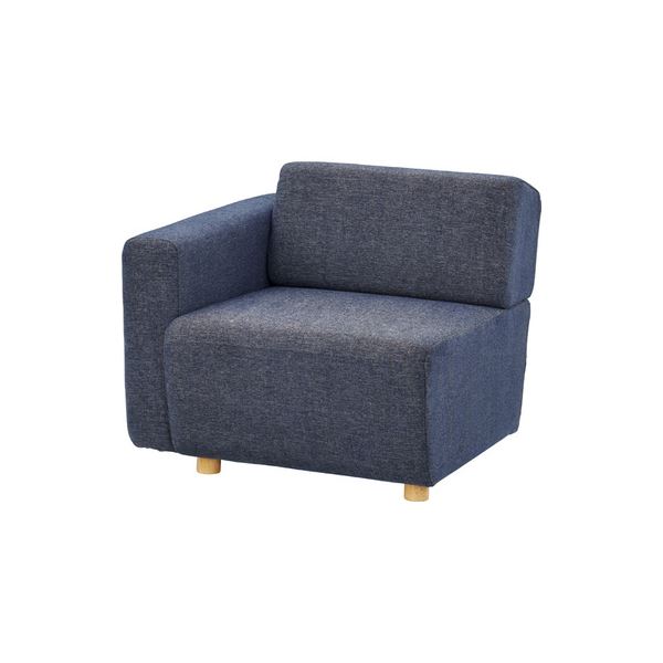 ■ソファー パーソナルチェア (イス 椅子) 幅80cm 1人掛け ネイビー 木製フレーム 脚付き 正面左側のみ肘付き キューブ リビング ダイニン