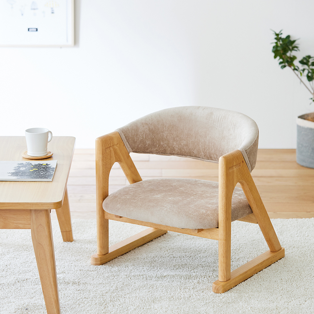 肘掛け部を少し長めに設計しグリップ部を確保することで、しっかりつかめて立ち上がりやすい形状にこだわりました天然木×ファブリック張りならではの温かみと優しい肌触りが素敵父の日、母の日、誕生日などのプレゼントにも最適面倒な組み立て不要、届いてすぐお使いいただける完成品にてお届けします#ギフト #父の日 #母の日 #ローチェア #ローソファー #座椅子